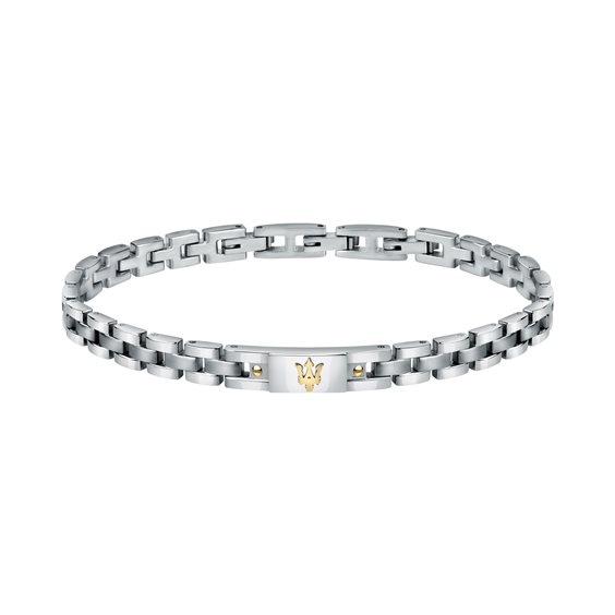 Maserati bracciale JM420ATH05 Braccialetto da uomo realizzato con maglia jubilee in acciaio anallergico; targa centrale con logo dorato. Misura regolabile; chiusura con maglie rimovibili.