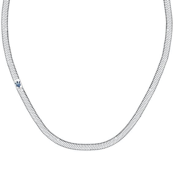 Collana snake da uomo realizzata in acciaio anallergico. Elemento laterale con logo blu. Chiusura a moschettone