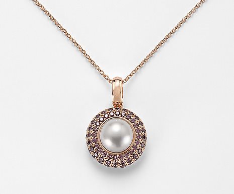 COLLANA IN ARGENTO 925 - ZIRCONI VIOLA E PERLE TIPO ACQUA DOLCE