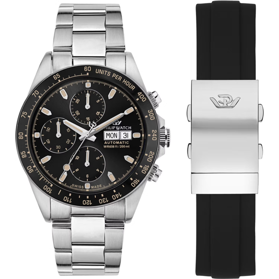 OROLOGIO PHILIP WATCH CARIBE - R8243607006 - Philip Watch experience: Urban, Genere : Uomo, Materiale e finitura cassa: Acciaio, Materiale sintetico, Misura cassa: 42mm, Spessore cassa: 15,45, Finitura cassa: Lucido, Satinato, Colore cassa: Silver, Vetro: Vetro zaffiro antiriflesso, Materiale cinturino: metallo, Colore cinturino: Silver, Chiusura: Fibbia diver c, Pulsanti, blocco sicurezza ed esten, Water resistant: 20 atm, Garanzia: Ufficiale 2 anni Philip Watch, Confezione: Originale Philip Watch