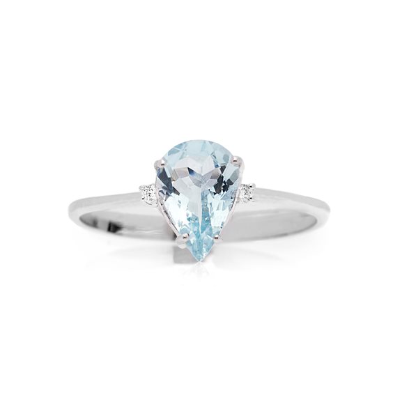 ANELLO IN ORO BIANCO CON PIETRA CENTRALE ACQUAMARINA CT 0,5 E DIAMANTI CT 0,01