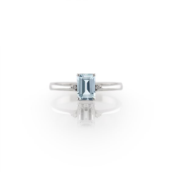 Anello in oro bianco 18 kt e Acquamarina ct. 0,50 con diamanti taglio brillante di kt. 0,02 VS1 G Color