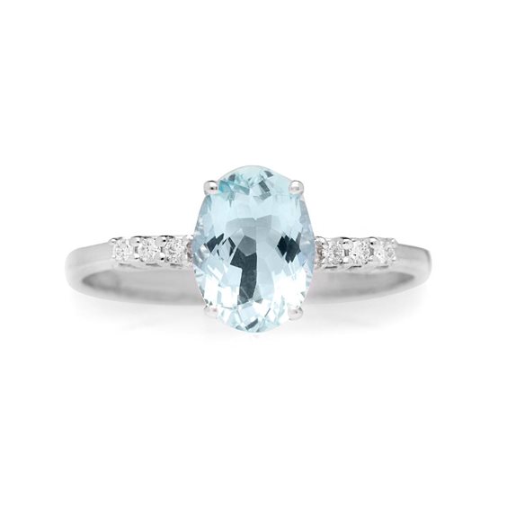 ANELLO ORO 18Kt E BRILLANTI Kt 0.06 - PIETRA ACQUAMARINA Kt 1.50