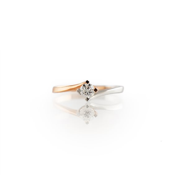 Anello in oro bianco e rosa 18 kt con diamante taglio brillante di kt 0.04 VS1 G Color
