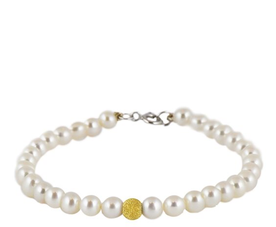 BRACCIALE DI PERLE MM 6/6.5 CON CENTRALE PALLINA ORO GIALLO, CHIUSURA ORO GIALLO
