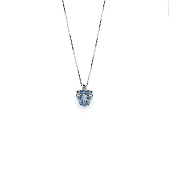 Collana io oro bianco 18 kt con pendente Acquamarina di kt 0.36 e diamante taglio brillante di kt 0.03 - VS1 G Color