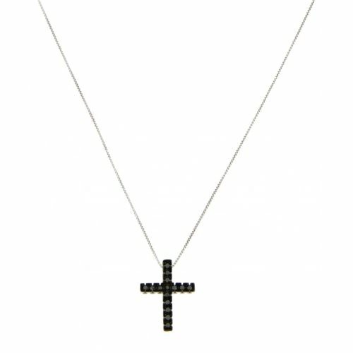 Collana Promesse Gioielli in oro bianco 750/00. La collana ha un ciondolo a forma di croce con incastonati diamanti neri. La lunghezza della collana è di 50 cm. La chiusura della collana è con moschettone