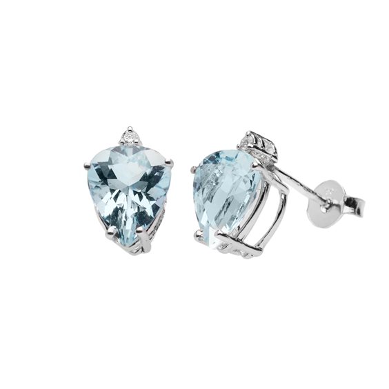 Orecchini oro 18kt brillante Kt0.03 e acqua marina kt 0.65