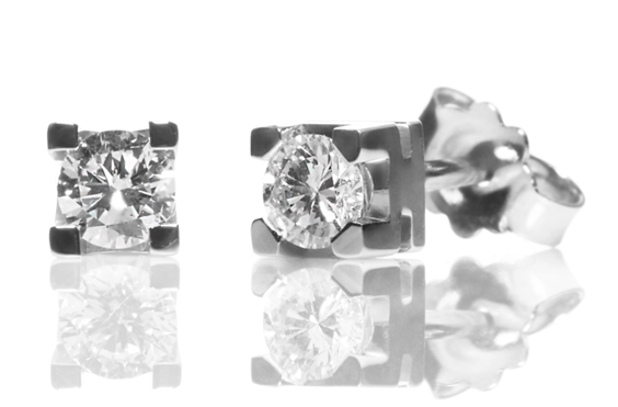 Orecchini in oro bianco 18 kt con 2 diamanti taglio brillante di kt. 0.10 in totale, colore G VVS1