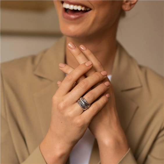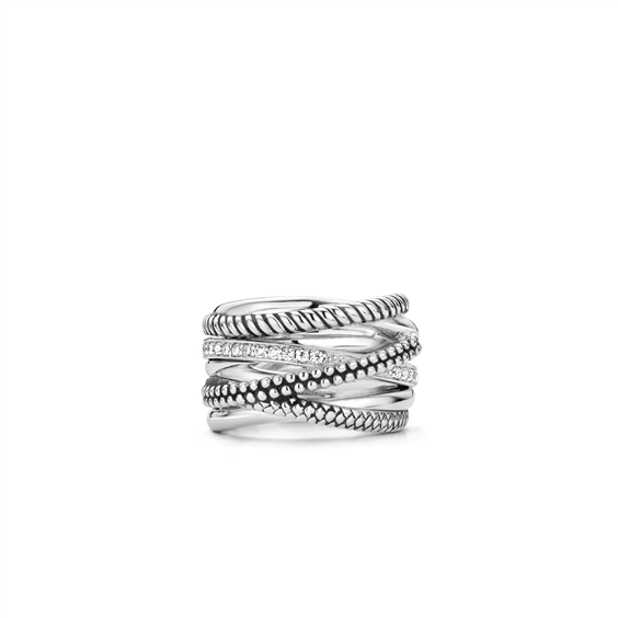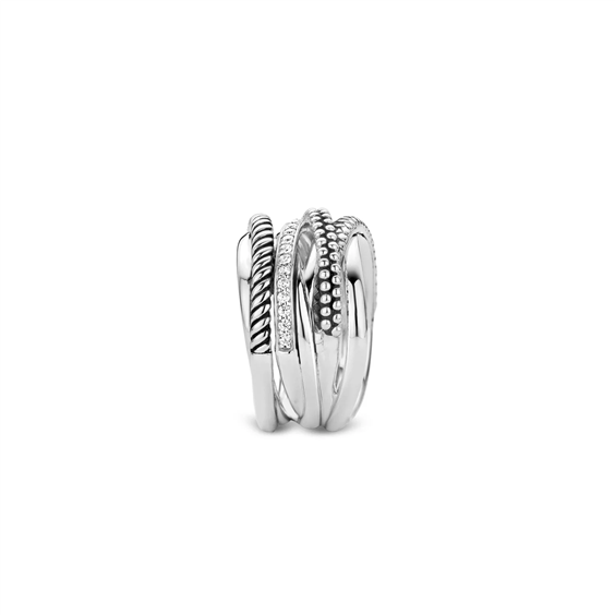 Questo argento di accatastamento TI SENTO - Milano è realizzato in argento sterling rodiato. L'anello è uno degli eleganti anelli di accatastamento della collezione TI SENTO, in cui diversi anelli possono essere combinati ed indossati su uno stesso dito.Le piccole sfere sono un'elegante variazione per un anello di accatastamento. Sono presenti molti anelli da combinare secondo l'idea del Mix & Match.