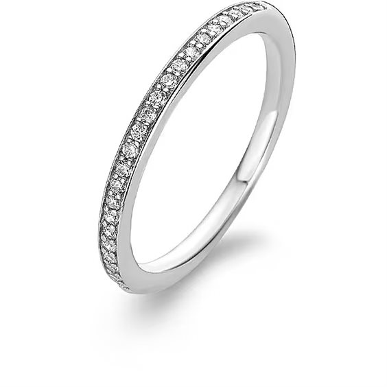 Anello da donna della marca ti sento - milano. Anello 8 realizzato in argento 925 con placcatura al rodio. Gioiello con zircone di colore bianco. Anello con larghezza superiore 2mm, e larghezza inferiore 2mm.