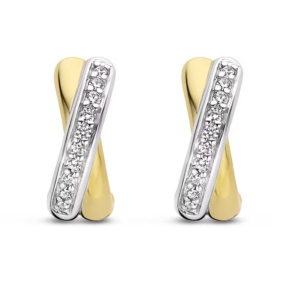 ORECCHINI TI SENTO MILANO CERCHI IN ARGENTO 925 PLACCATO ORO GIALLO E BIANCO CON ZIRCONI BIANCHI.