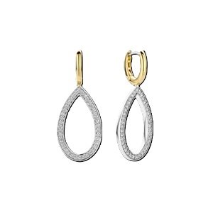 Orecchini TI SENTO in argento placcato oro 78039ZY. Realizzati in argento sterling 925 allungati a forma di lacrima combinano un luminoso cerchio placcato oro giallo con una goccia aperta placcata platino, incastonata con pavé di zirconi cubici bianchi taglio brillante.