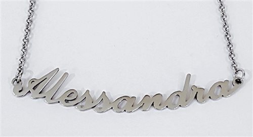 Collana da Donna con nome Alessandra in acciaio, lunghezza nome di 8cm, lunghezza catenina regolabile da 43cm a 48cm.