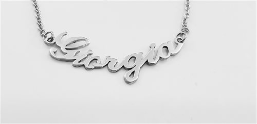Collana in acciaio con nome Giorgia, Lunghezza catenina regolabile da 43cm a 48cm, Lunghezza del nome di 4cm e mezzo.