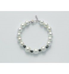oro 750/1000; fl. 0,06 ematite col. nero taglio sfaccettato mm6;fl. 0,3 madreperla agglomerata col. bianco mm10; fl. 0,09 madreperla agglomerata col bianco mm12 ,microfusione