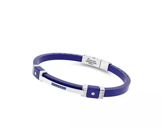 Bracciale in acciaio 316L ipoallergenico, spinelli blu e silicone.