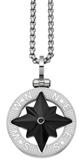 COLLANA IN ACCIAIO 316L - PENDENTE ROSA DEI VENTI COL NERO